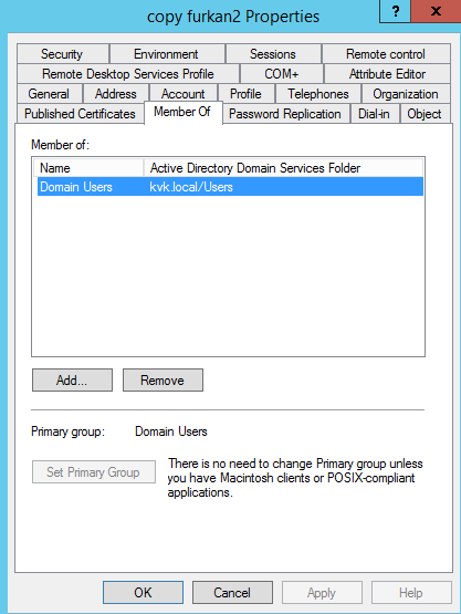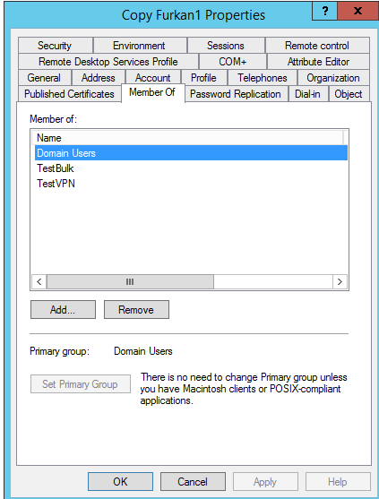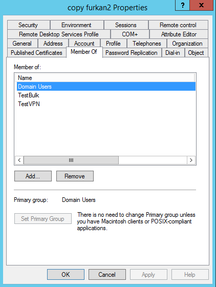copyfurkan1 kullanıcısının üye olduğu grupları copyfurkan2 kullanıcının memberof bölümüne ekliyoruz.
